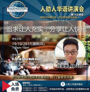 人助人华语讲演会 第26次例会 19 10 2017
